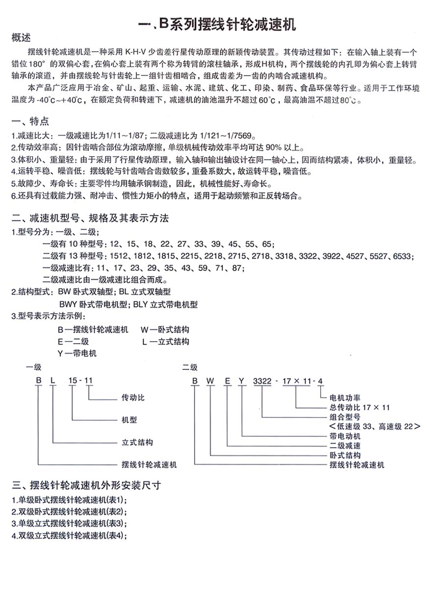 擺線針輪減速機是一種采用K-H-V少齒差行星傳動原理的新穎傳動裝置。其傳動過程如下:在輸入軸上裝有一個錯位180度的雙偏心套,在偏心套上裝有兩個稱為轉臂的滾柱軸承,形成H機構,兩個擺線輪的中心孔即為偏心套上傳臂軸承的滾道,并由擺線輪與針齒輪相嚙合,組成差為一齒的內嚙合減速機構。